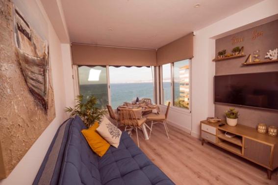 The apartment with a balcony and sea views has 1 bedroom, a living room, a flat-screen TV, an equipped kitchenette with a dishwasher and an oven, and 1 bathroom with a shower. Towels and bed linen are available in the apartment. Additional in-room amenities include wine or champagne.