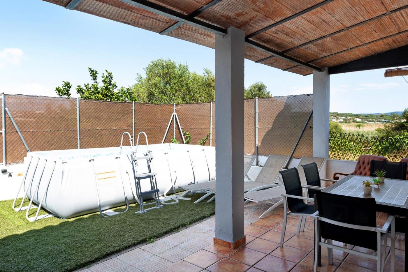 The holiday home conveniently has a year-round outdoor pool.