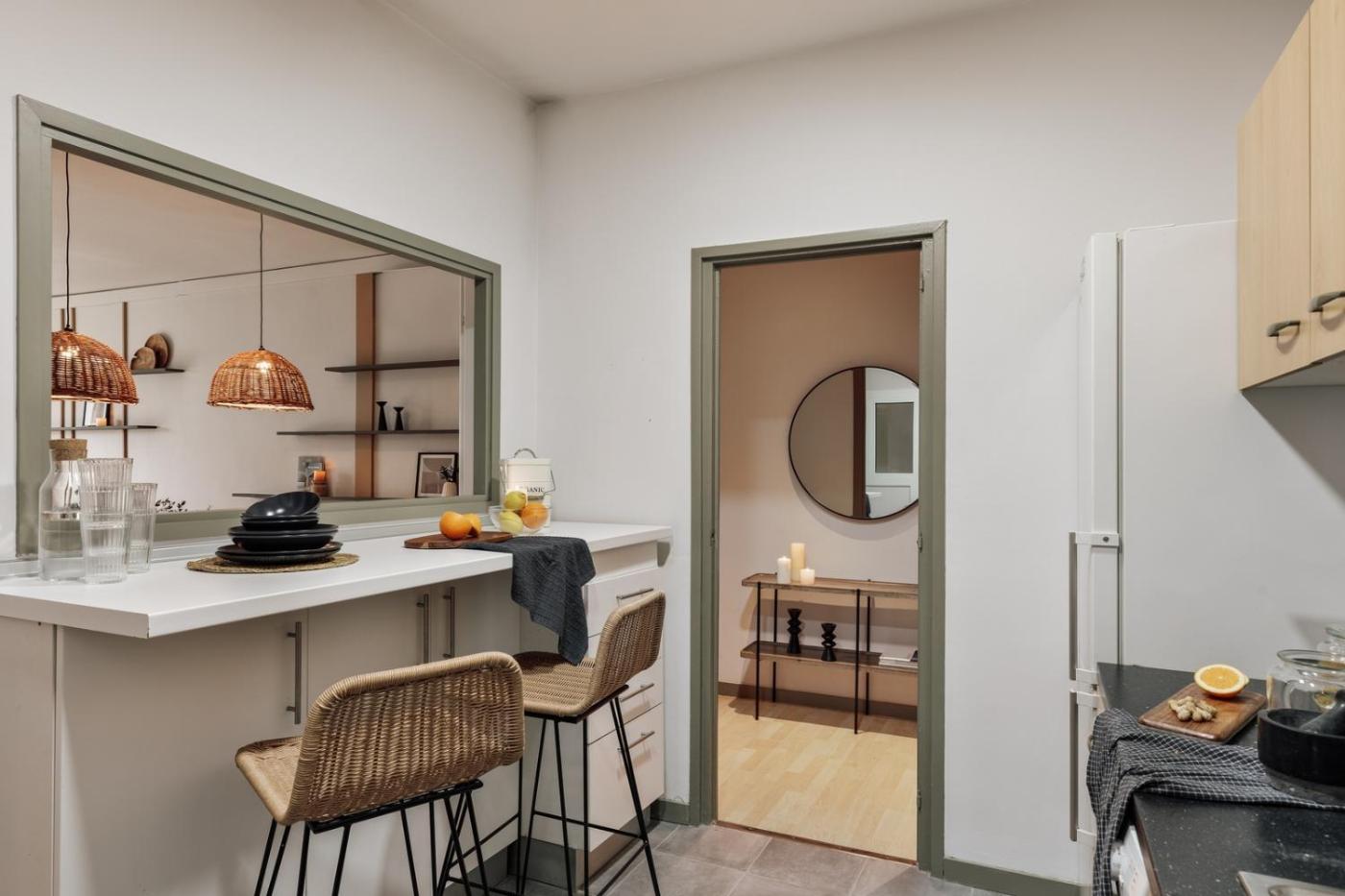 Our in-house design team expertly selectsapartment furniture and decor to ensure the highest level of quality and comfort. As part of consistent home upkeep, design improvements, and photo staging, there may be minor differences in furnishings seen in the photos and what you find in the apartment. Inquire with a sales agent for any questions or doubts.