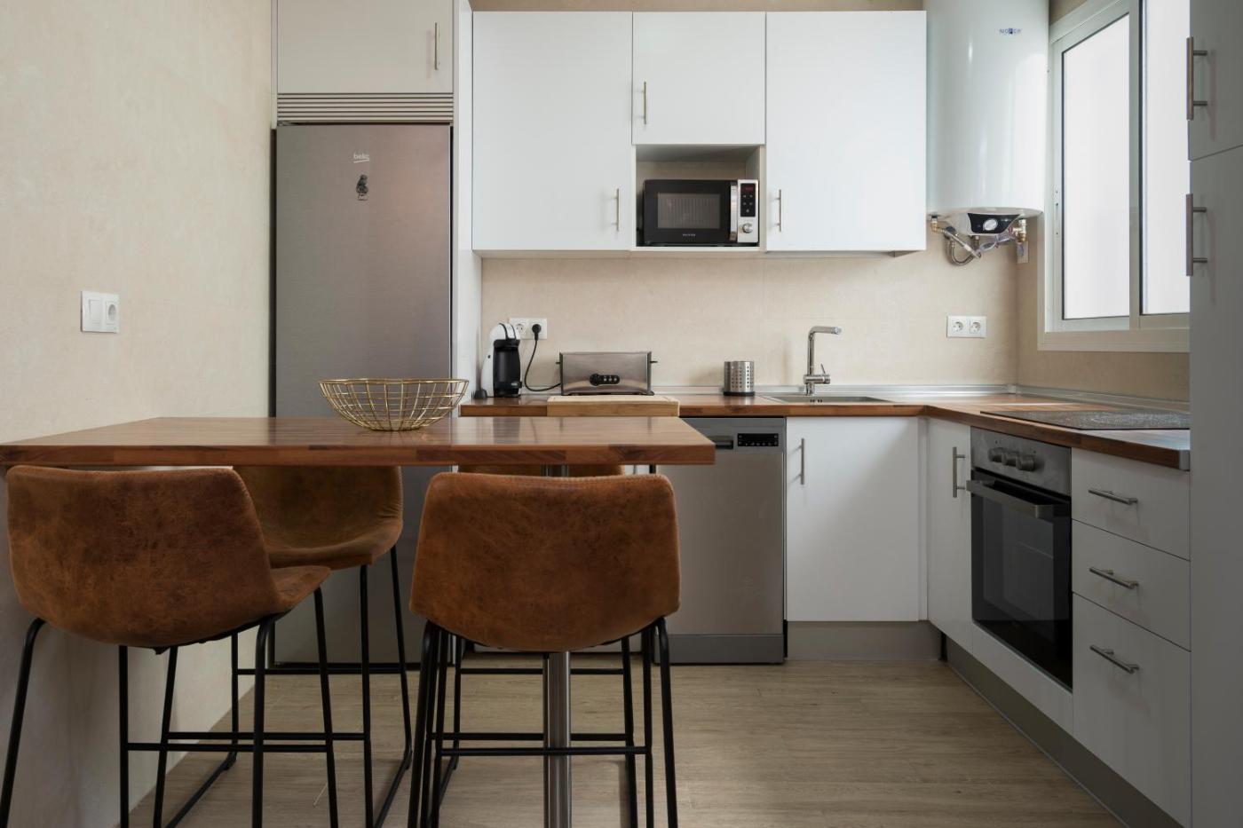 Two-Bedroom Apartment. Featuring a private entrance, this spacious apartment also consists of 2 bedrooms, a seating area and 1 bathroom with a walk-in shower and a hairdryer. Guests can make meals in the kitchen that is equipped with a stovetop, a refrigerator, a dishwasher and kitchenware. The air-conditioned apartment provides a flat-screen TV with streaming services, a washing machine, soundproof walls, a tea and coffee maker as well as city views. The unit offers 2 beds.
