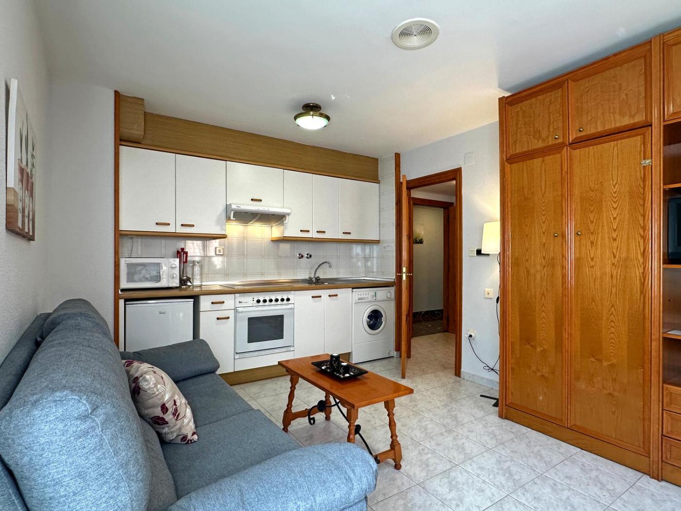 Standard Apartment. This apartment features a double or twin bedroom, and a lounge with a sofa bed, 2 roll-away beds, flat-screen satellite TV and a balcony with great views. The kitchenette comes with a microwave, coffee maker and washing machine, and the bathroom includes a hairdryer. 4 single beds or 1 double bed + 2 single beds (upon availability)