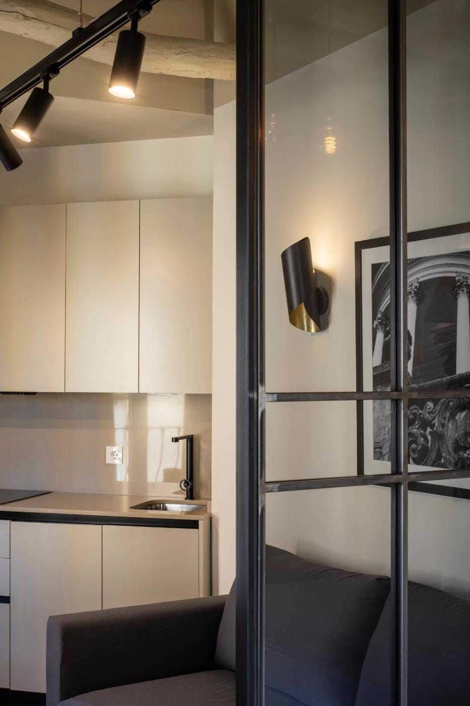 One-Bedroom Apartment. Featuring a private entrance, this air-conditioned apartment is comprised of 1 living room, 1 separate bedroom and 1 bathroom with a hairdryer. The fully equipped kitchen features a stovetop, a refrigerator and a microwave. Boasting a balcony, this apartment also offers a washing machine, a tea and coffee maker and a flat-screen TV. The unit offers 2 beds.