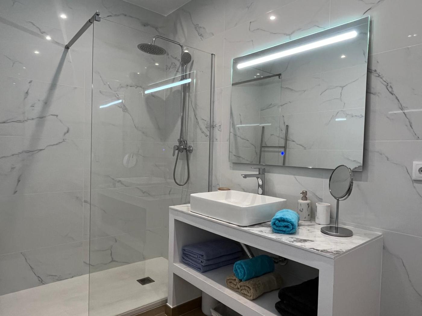 Four-Bedroom House. This spacious holiday home comprises 1 living room, 4 separate bedrooms and 2 bathrooms with a shower and free toiletries. In the well-equipped kitchen, guests will find a stovetop, a refrigerator, a dishwasher and kitchenware. The air-conditioned holiday home provides a flat-screen TV, a washing machine, a private entrance, soundproof walls as well as sea views. The unit offers 5 beds.