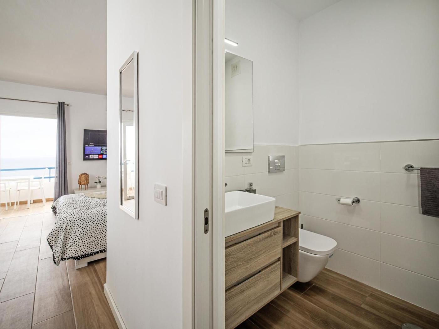 Studio with Ocean View. In the kitchenette, guests will find a stovetop, a refrigerator, kitchenware and a microwave. This air-conditioned studio is comprised of a flat-screen TV with streaming services, a private bathroom as well as a balcony with sea views. The unit has 2 beds.